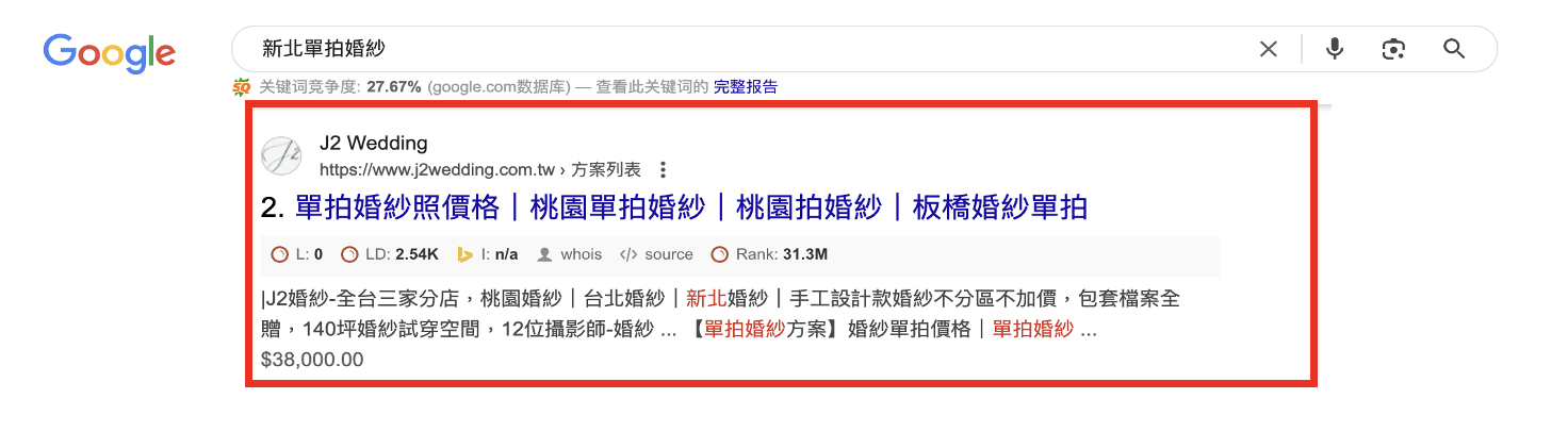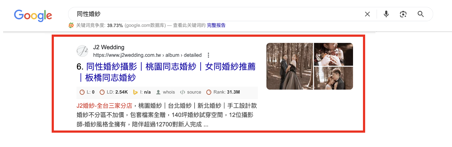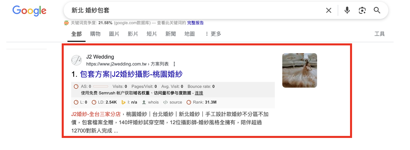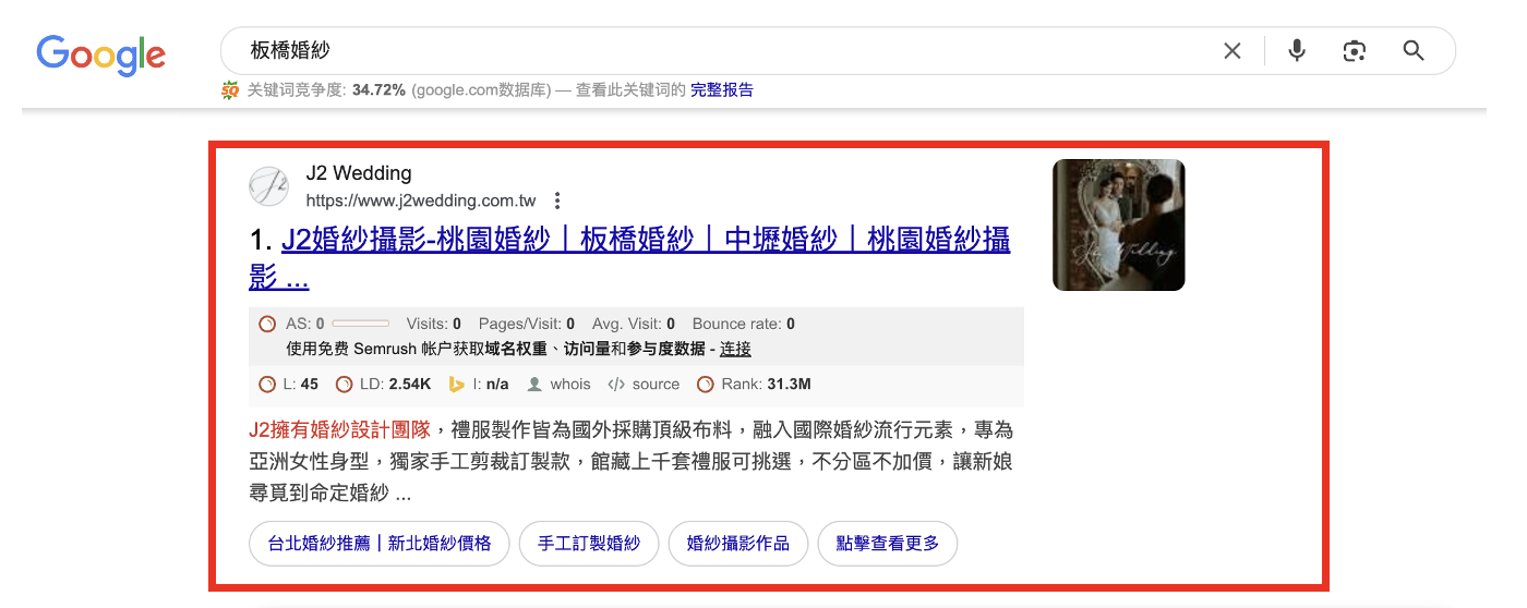 「板橋婚紗」、「新北婚紗包套」 皆為第一名