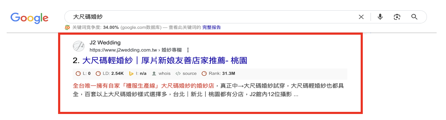 「大尺碼婚紗」「新北單拍婚紗」:第二名