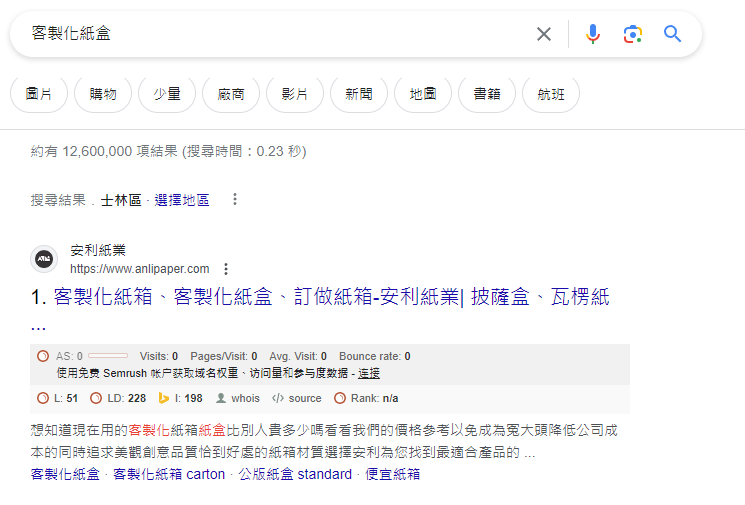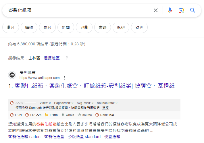 言青行銷協助安利紙業建置符合 SEO 架構的客製化網站,搭配精準的關鍵字策略,成功將多組高價值詞提升至搜尋首頁,其中「客製化紙箱」排名第 3、「客製化紙盒」排名第 6,圖片搜尋則穩定佔據第一名位置,並有更多圖片被 Google 收錄。