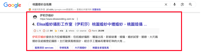 關鍵字「桃園婚紗店推薦」google搜尋首頁第四名 .png)