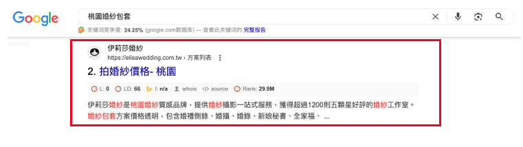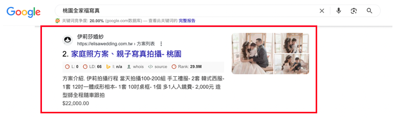 關鍵字「桃園婚紗包套」google搜尋首頁第二名 .png)