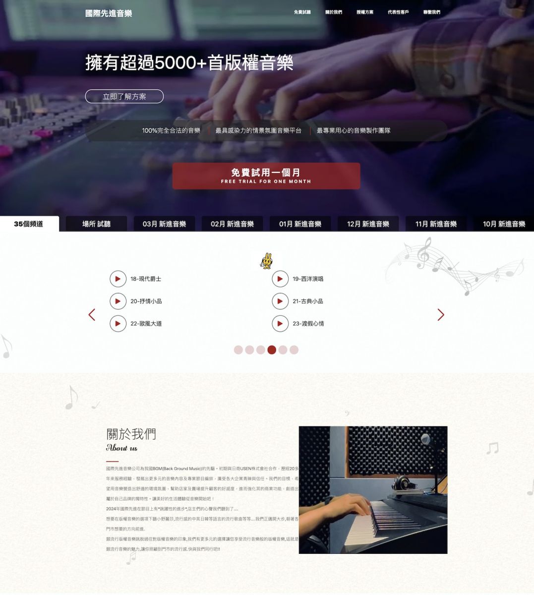 隨著數位接觸成為消費者與品牌之間的主要溝通方式,國際先進音樂也希望透過一個架構清楚的一頁式網站,讓潛在客戶更快速理解服務方案、直接試聽音樂,進一步提升洽詢機會。