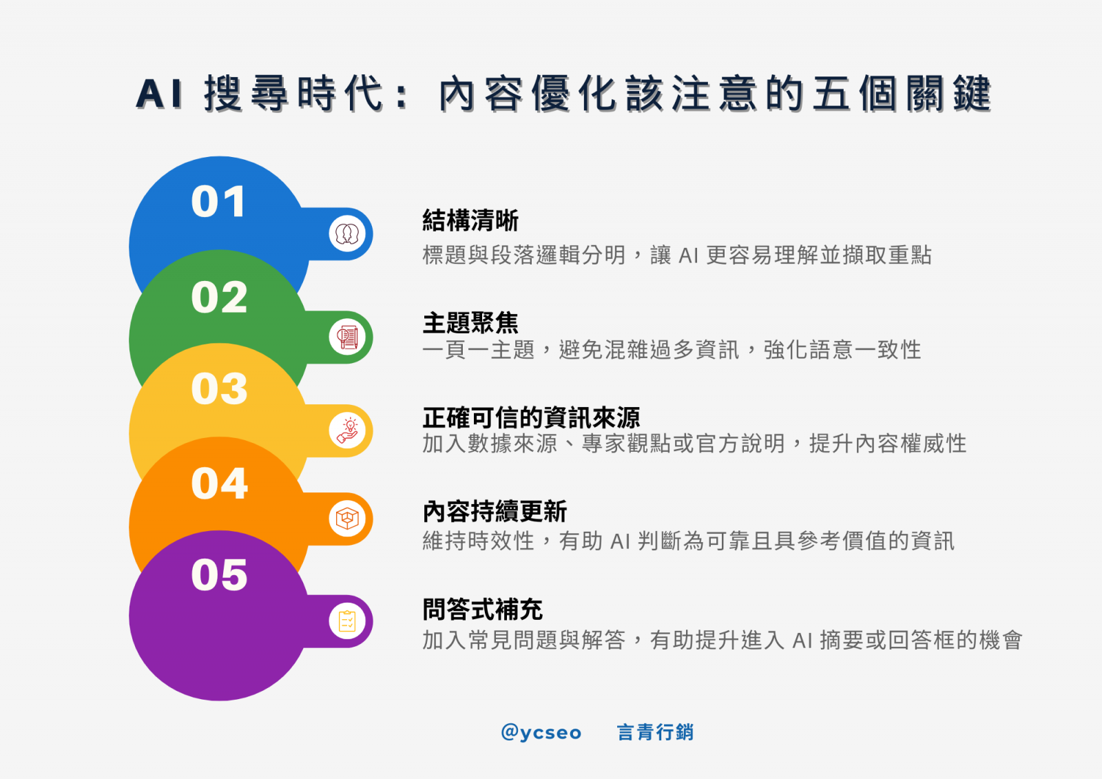AI 搜尋並不代表寫內容要「像機器」,但在 GEO(Generative Engine Optimization)思維下,以下做法變得不可或缺:.png)